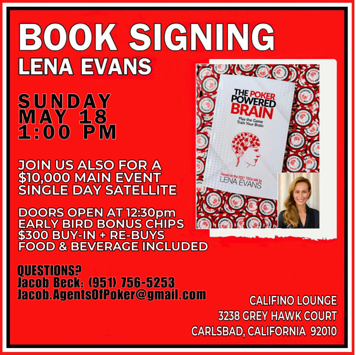Join us for an in-person BOOK SIGNING with THE POKER POWERED BRAIN author Lena Evans *AND* join us for a single-day satellite to win a $10,000 Main Event seat!